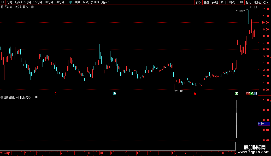 XG12:=IF(CLOSE/REF(CLOSE,1)>1.05 AND HIGH/CLOSE< 1.01 AND XG11>0,4,0);