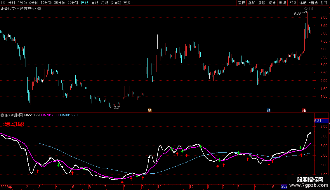DRAWTEXT_FIX(1,0.01,0.05,0,'适用上升趋势'),COLORRED;