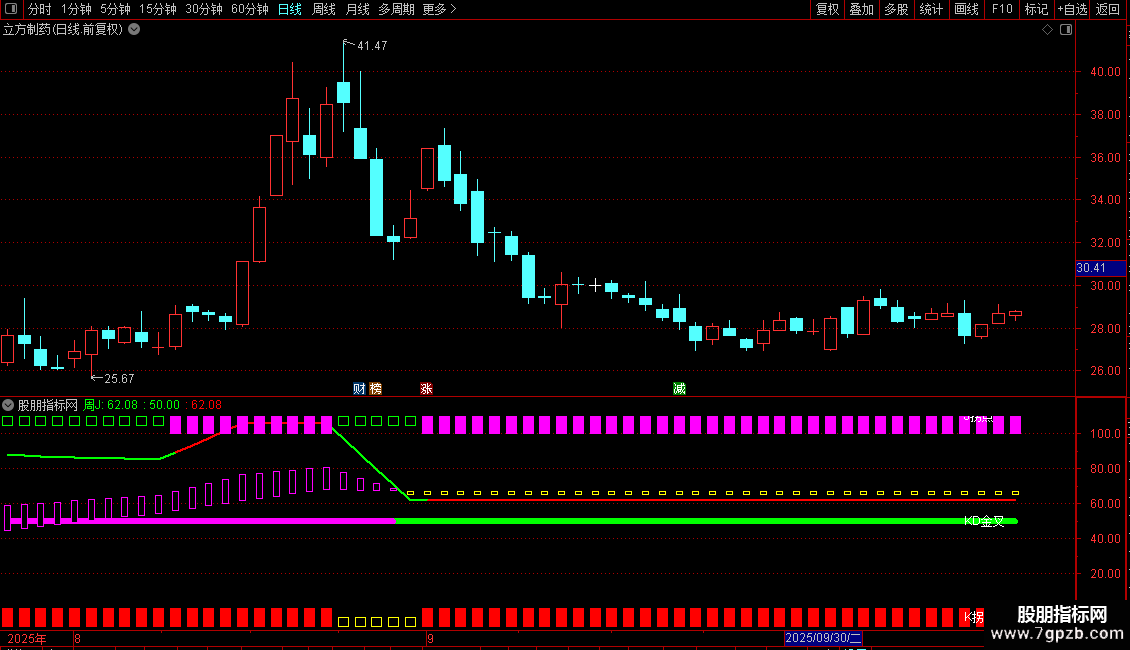 DRAWTEXT(CURRBARSCOUNT=4,50,'KD金叉'),COLORFFFFFF;