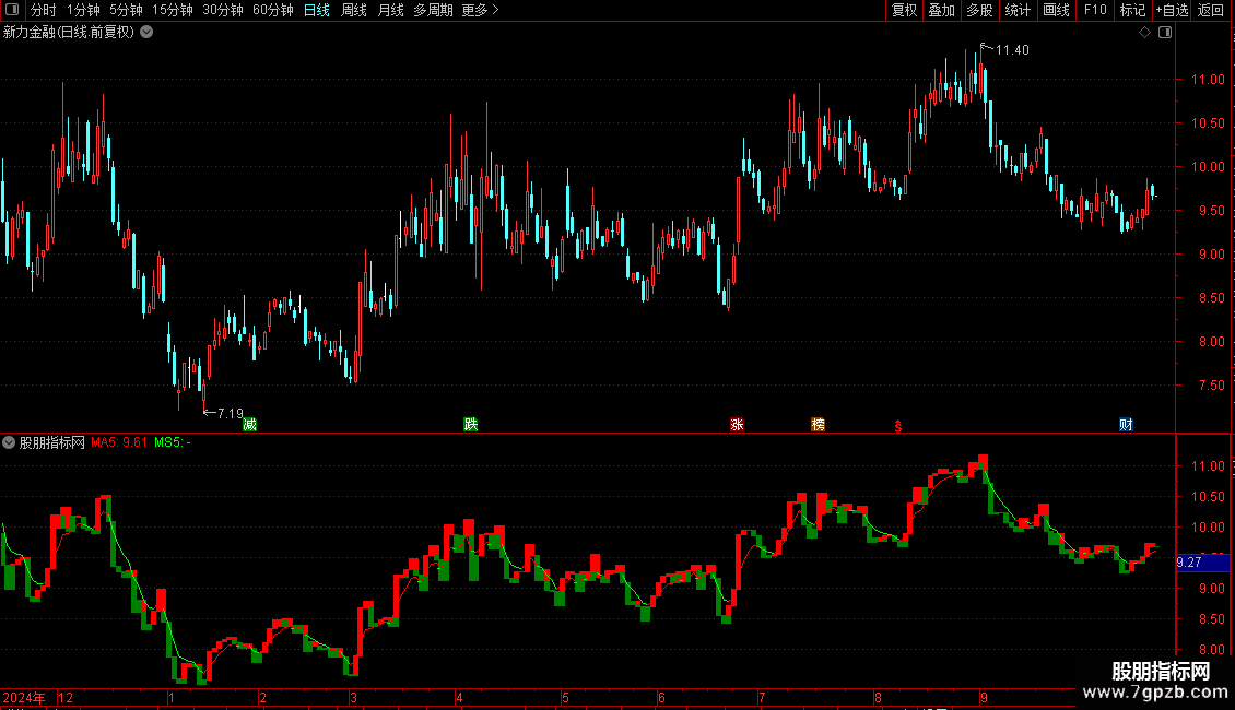 STICKLINE(ZD AND C<=REF(AA,1),LL,HH,2.7,0),COLOR008000;