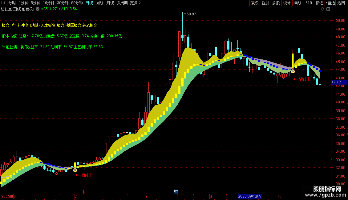 DRAWTEXT_FIX(ISLASTBAR,0.005,0.12,0,股本市值),COLORGREEN;