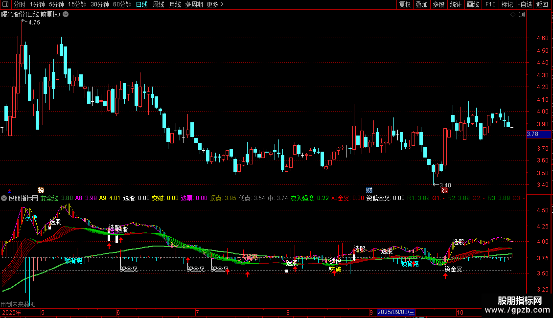 DRAWTEXT(资低金叉,低点+0.02,'资金叉'),COLORWHITE;