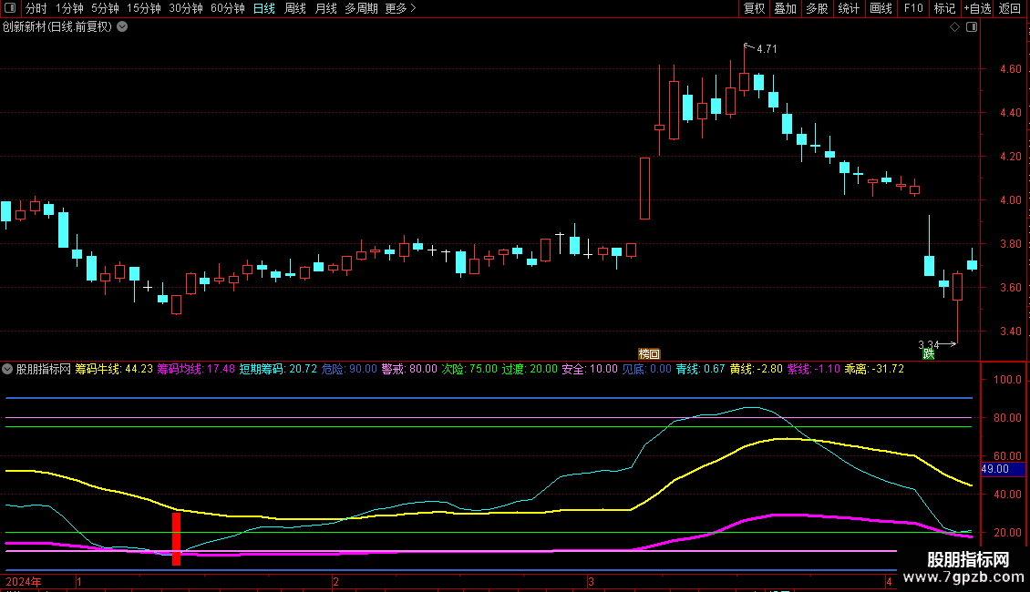 紫线:筹码均线-REF(筹码均线,1),NODRAW,COLORMAGENTA;