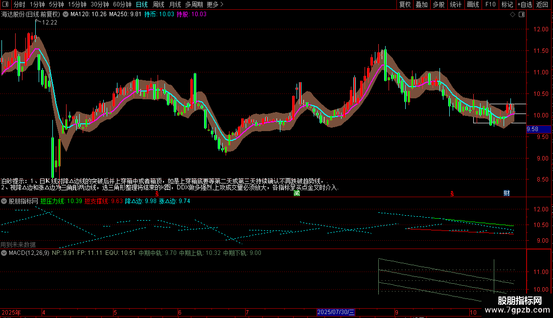 DRAWTEXT_FIX(ISLASTBAR,0,0.92,0,'泊砂提示:1、日K线对降△边线的突破后并上穿箱中或者箱顶,如是上穿箱底要等第二天或第三天持续确认不再跌破趋势线,.'),COLORWHITE;