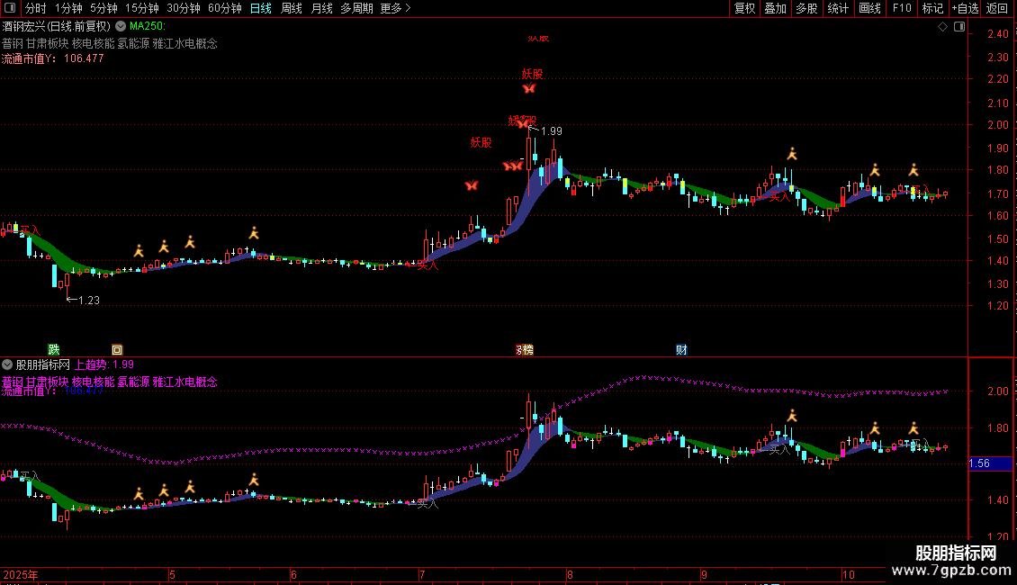 趋势强度达标:副图趋势强度数值≥3,符合强势标准。