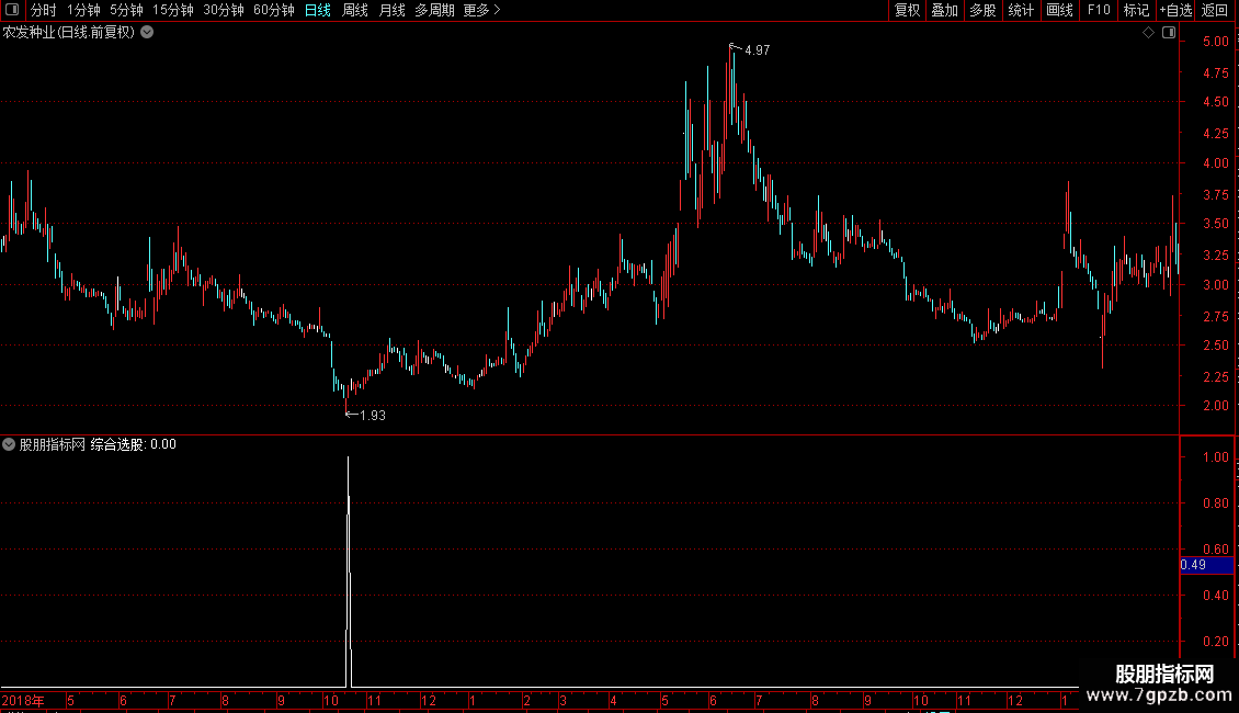 原先发表的综合抄底指标通过综合选股按钮是可以选股的,但很多朋友不会操作,为方便大家选股,做了个选股指标满足大家的要求。
