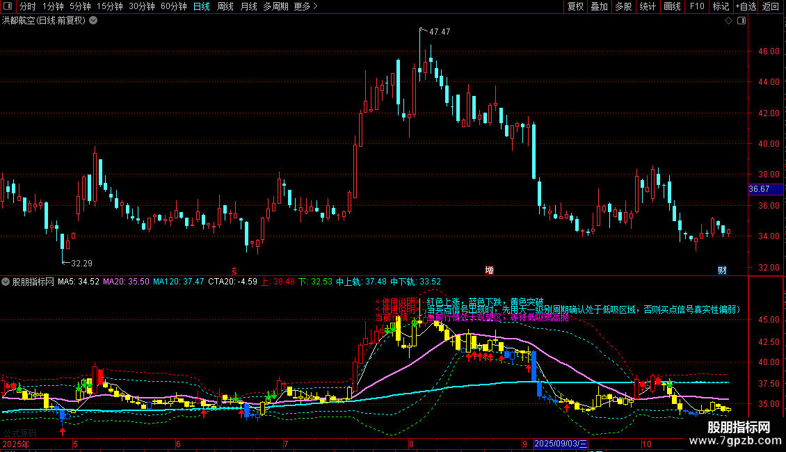下:MA20-2*STD(CLOSE,20),COLOR00FF00,DOTLINE;