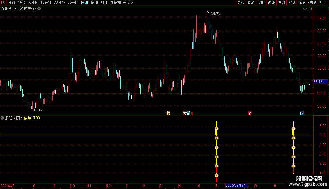 信号:IF(强势底分,6.5,5),COLORYELLOW,LINETHICK2;