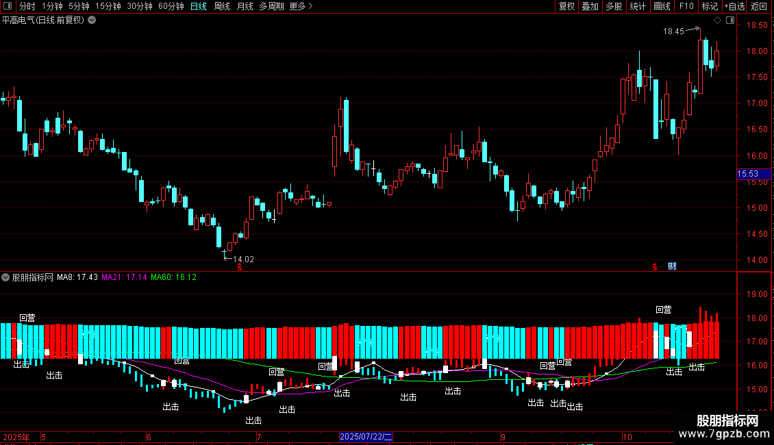 MA8:MA(CLOSE,8),COLORWHITE,LINETHICK1;