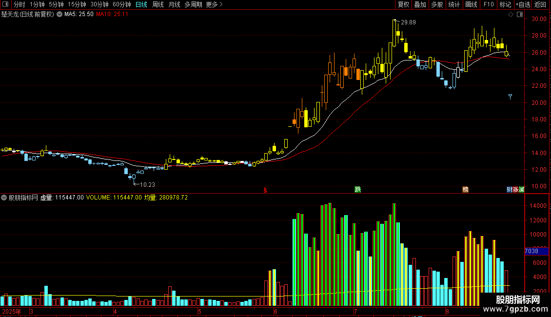 7.变色龙:变色龙指标也是一个傻瓜式操作指标,主要是运用在中线操作,适用于没有时间盯盘或解除初级技术的股民;根据K线不同颜色的变化来判断当前的股票行情。