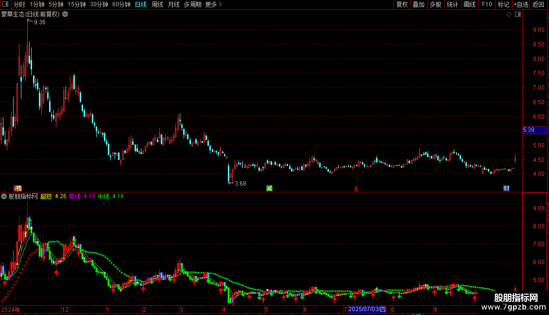 中线:EMA(短线,3),COLOR00FF00,LINETHICK1;