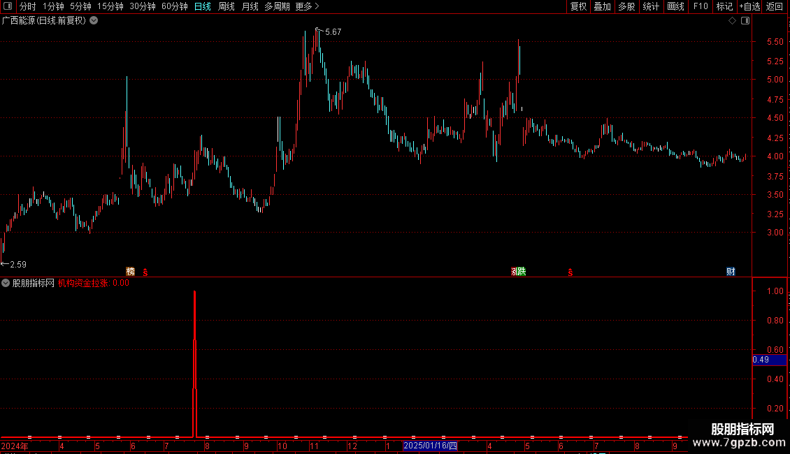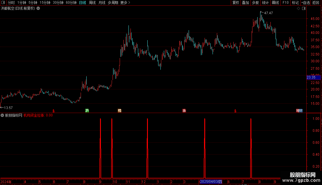 指标通过计算价格在不同周期的高低位置、资金流向和持股集中度等维度,综合判断机构资金进场拉涨的时机。当多个技术信号(如中长期趋势突破、资金强度达标、筹码集中)与短期均线金叉同步出现时,发出买入信号。