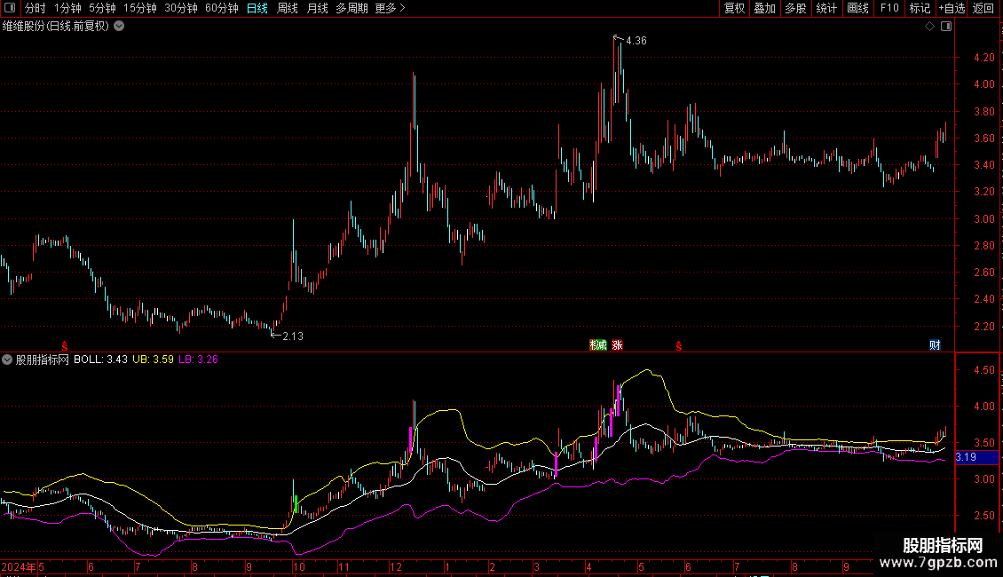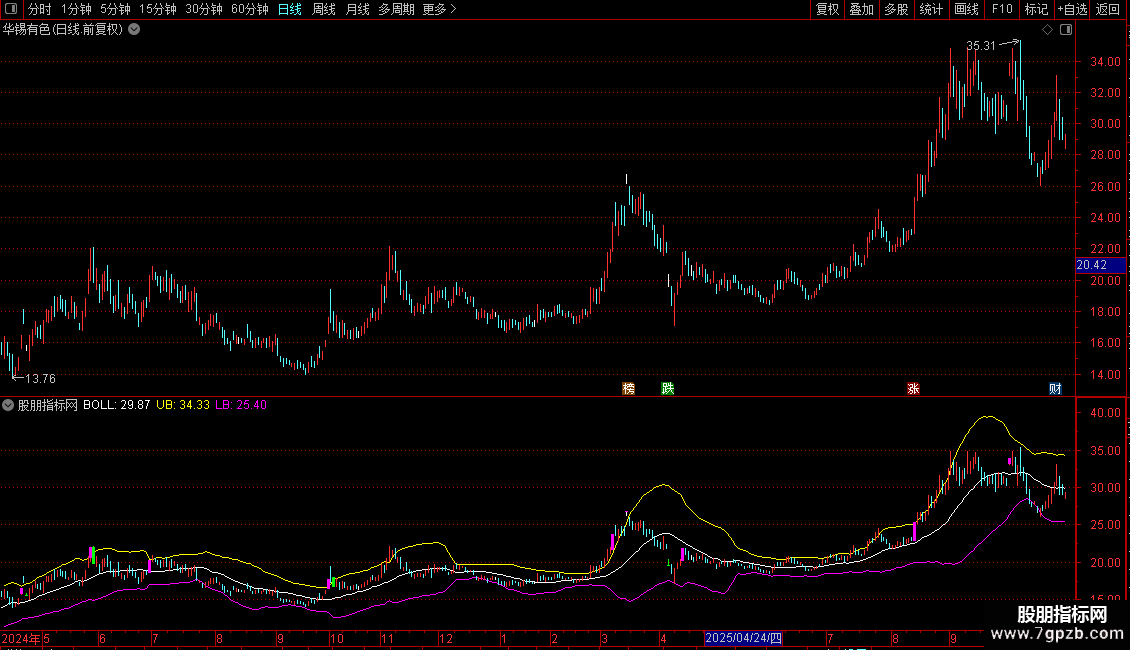 布林线——系统自带的经典好指标之一。可以判断顶底趋势、显示上升下降通道,同时也可以根据股价与布林上中下轨道线的位置关系来进行买卖交易决策等,是一个既简单又实用的指标。但就是这么一个既简单又实用的指标,许多朋友们都用不好甚至是不会用。系统自带的一般是主图指标,神渔为方便看图,把主图指标改成了副图指标,并进行了一些小小的优化。事先声明:本指标并非神渔原创,而是把系统自带的指标进行了一些小小的改变和优化而已,以方便看盘。