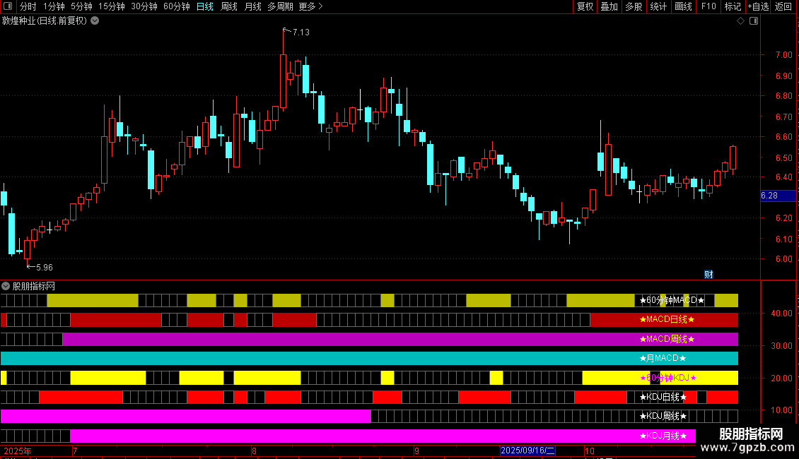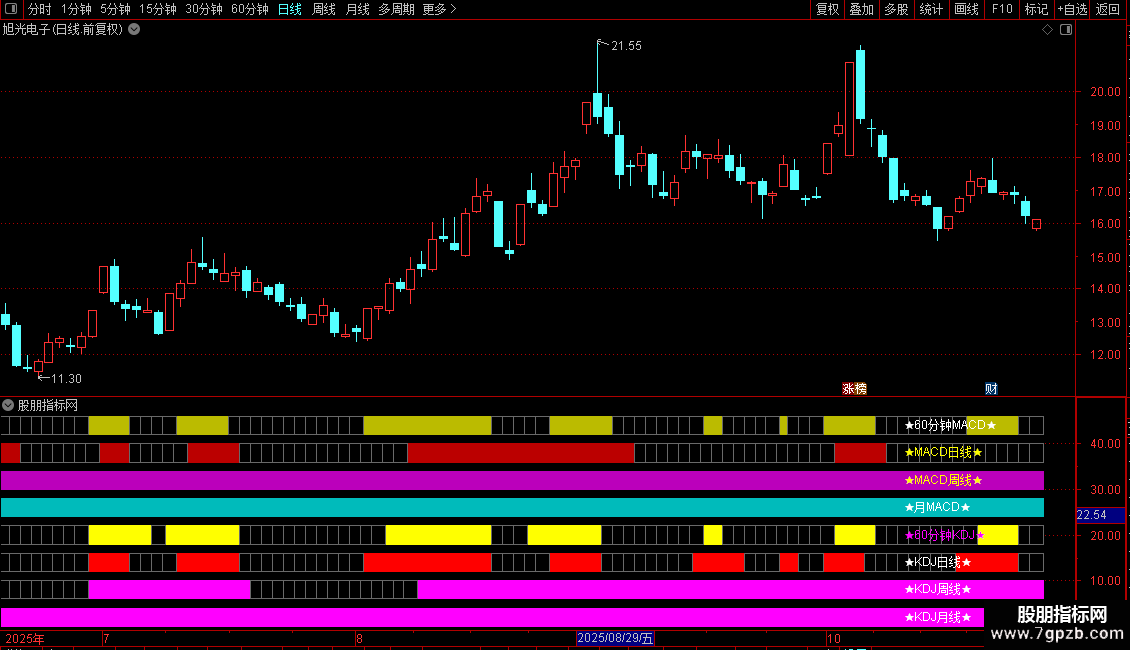 DRAWTEXT(CURRBARSCOUNT=13,38,'★MACD日线★'),COLOR00FFFF;