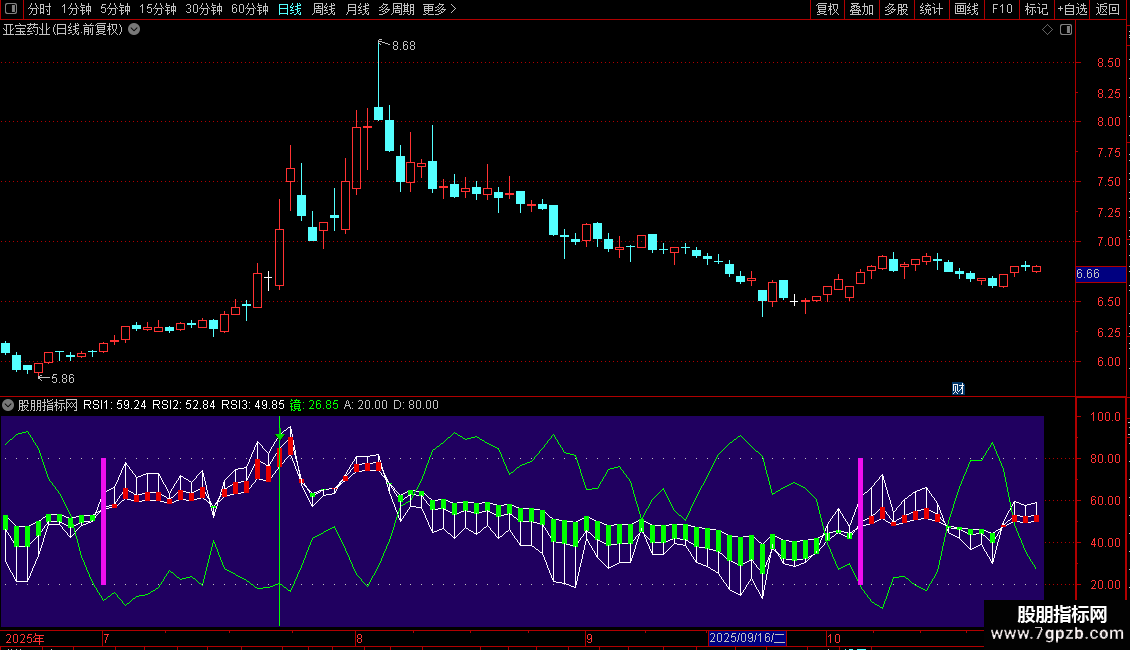 STICKLINE(CROSS(RSI1 ,10),0,100,0,0),COLOR05BDFA;