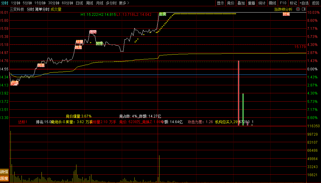 通达信〖简单分时〗适合竞价打板的朋友分时主图数据一目连然源码