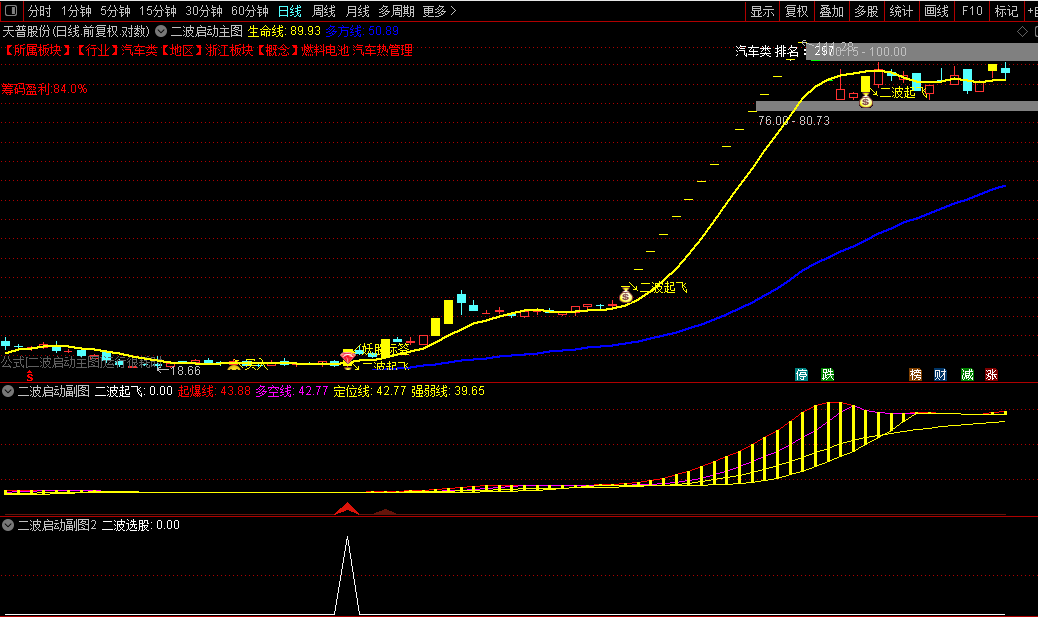 通达信【二波启动】主副图/选股指标妖股二波起飞大单买入策略源码