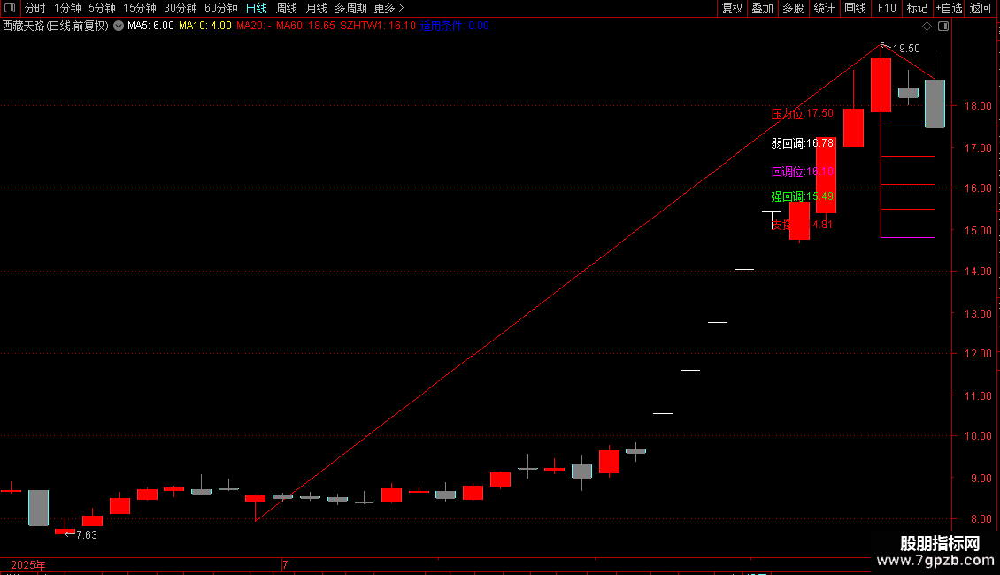 非常好用的 支撑压力分割工具,此指标可以明确的标注出支撑 压力位相关数据,左上方有文字提示,能帮助做判断。