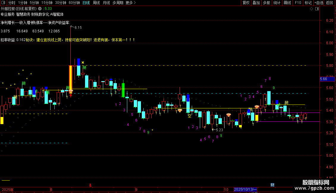 *本指标通过财务基本面与资金面共振原理,实现价值与趋势的完美结合,适合中短线协同作战。建议配合仓位管理使用,严守“线上阴线买,线下阳线抛”的纪律原则。