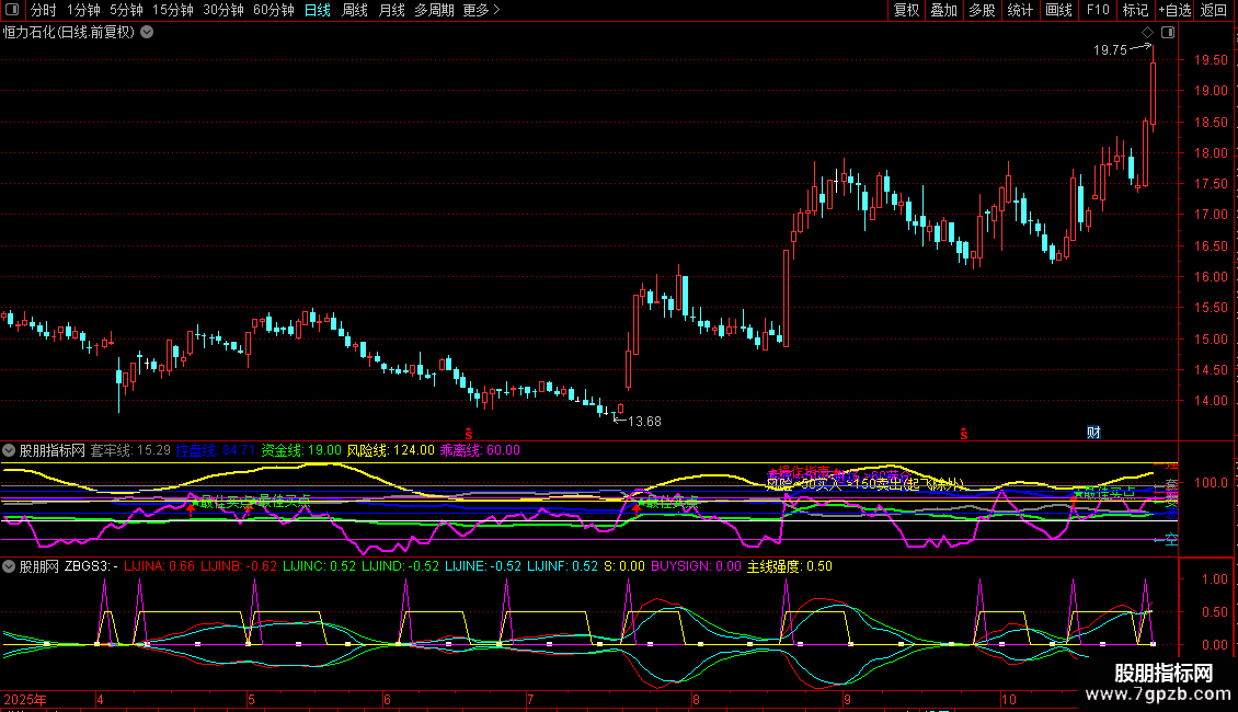 幅图指标是通达信兼容的画线类综合分析工具,围绕 “筹码状态、主力控盘、资金强度、风险等级、趋势乖离” 五大核心维度,通过信号线、分界线和动态标注,量化市场多空力量,提供明确的买卖点和仓位管理规则,适用于日线级别波段操作。