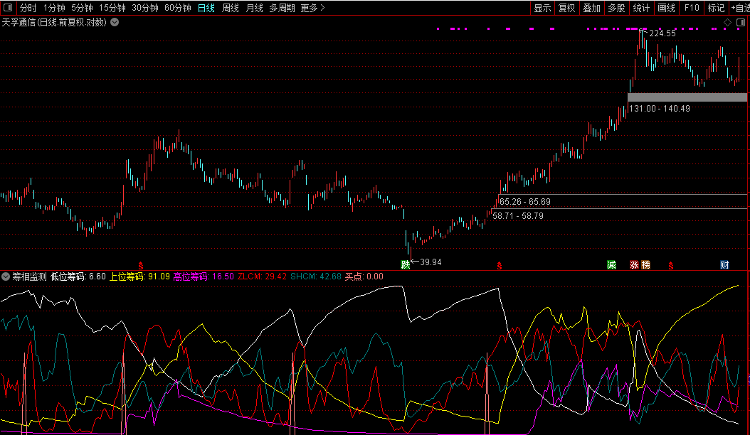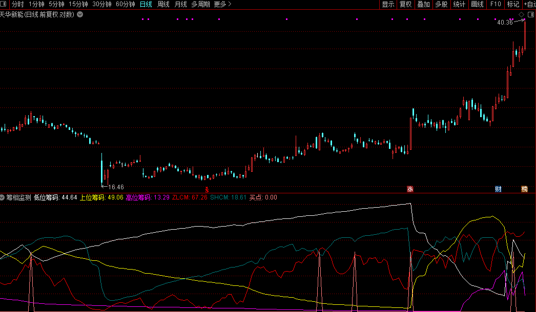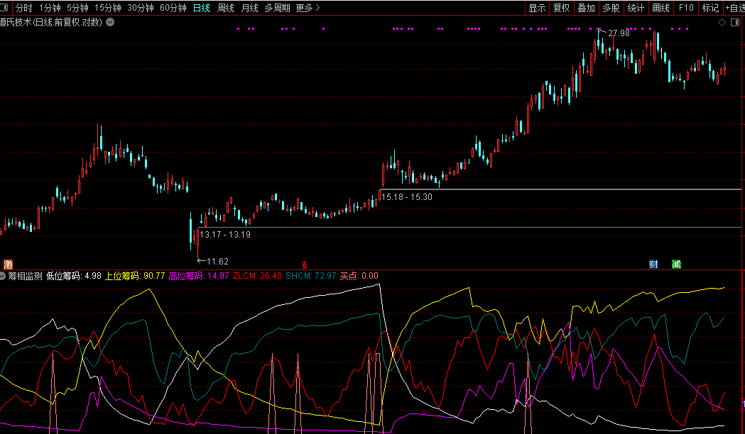 把自己几个源码略加柔和,筹相稳健略作改动,观察个股筹相的变化,体现在数值上,有个明确的定位,比如说筹相好,怎么个好法?筹相差,差到什么程度?本指标可以清晰的通过数值体现出来。我所发的都是最基本的,简单明了目的明确;每个人的出发点不同,操作方法也不同,各个因素的影响所以优化方式肯定不一样,这无可厚非。在看强势股的时候,一旦发现低位筹码线上行,就要密切关注。同时也关注主力线和散户线的走势。