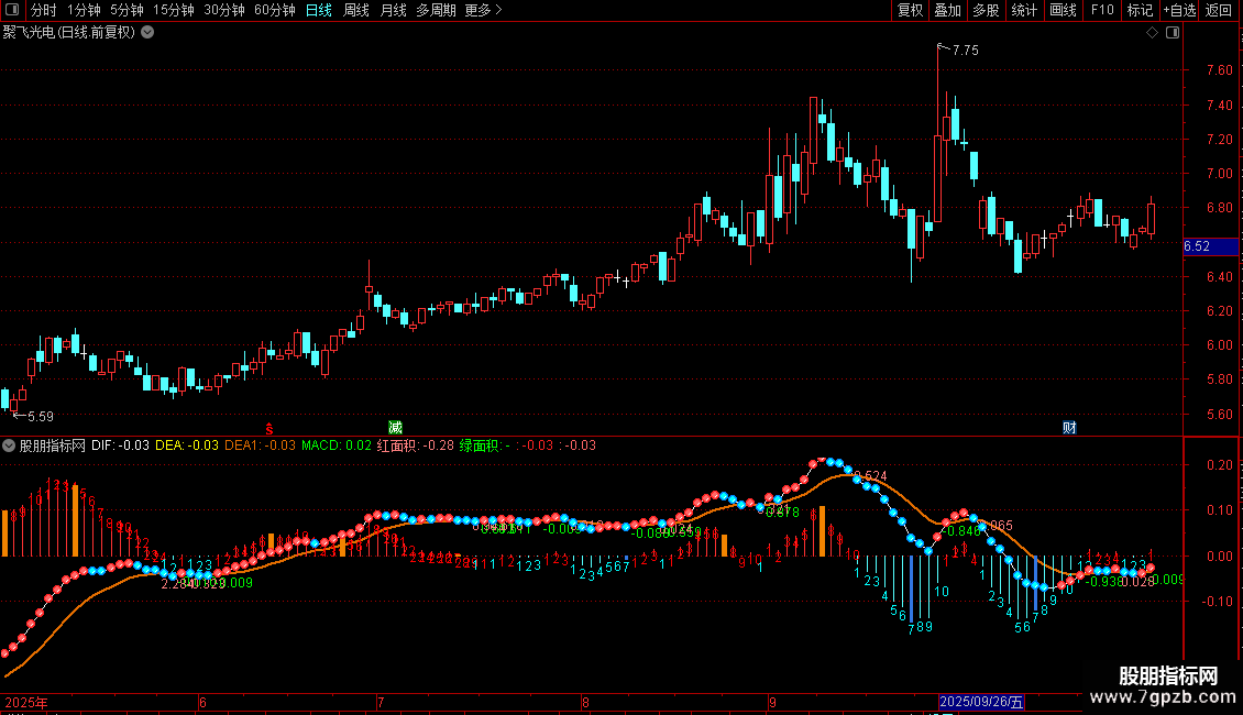 DEA1:EMA(DIF,9) LINETHICK2 COLOR006EE4 ;