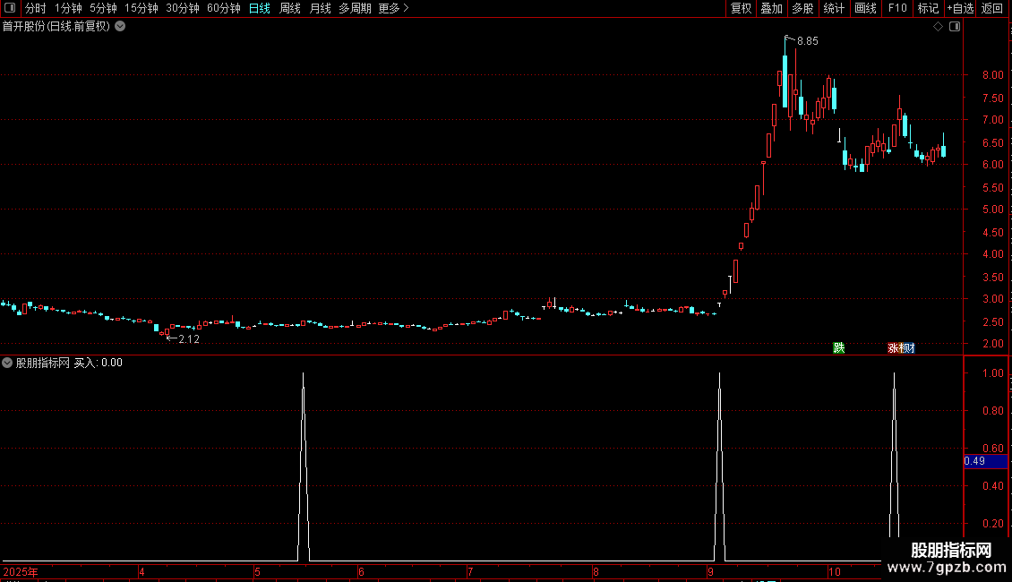 以上情况必须紧盯5分钟至60分钟K线分时指标,特别是60分钟线,在盘整期间,60分钟指标如KDJ,一旦在底部形成金叉状态,而时间上又刚好吻合的话,就可以择机介入。