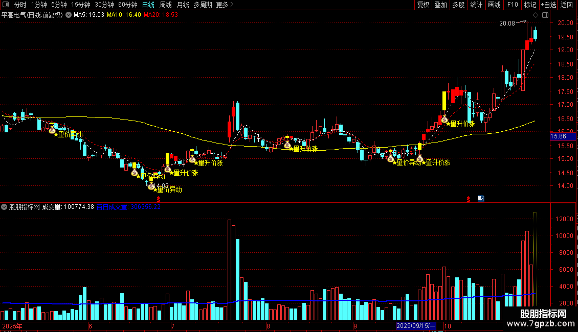 副图层面需观察黄色量柱与加号图标的共振表现——当两者同步出现时,可判定为龙头股启动的确定性机会。
