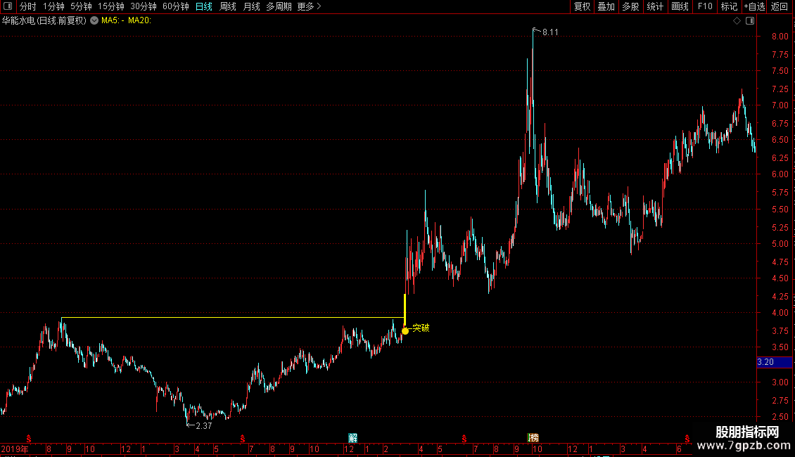 DRAWTEXT(XH,L*0.9905,'←突破'),COLORYELLOW;