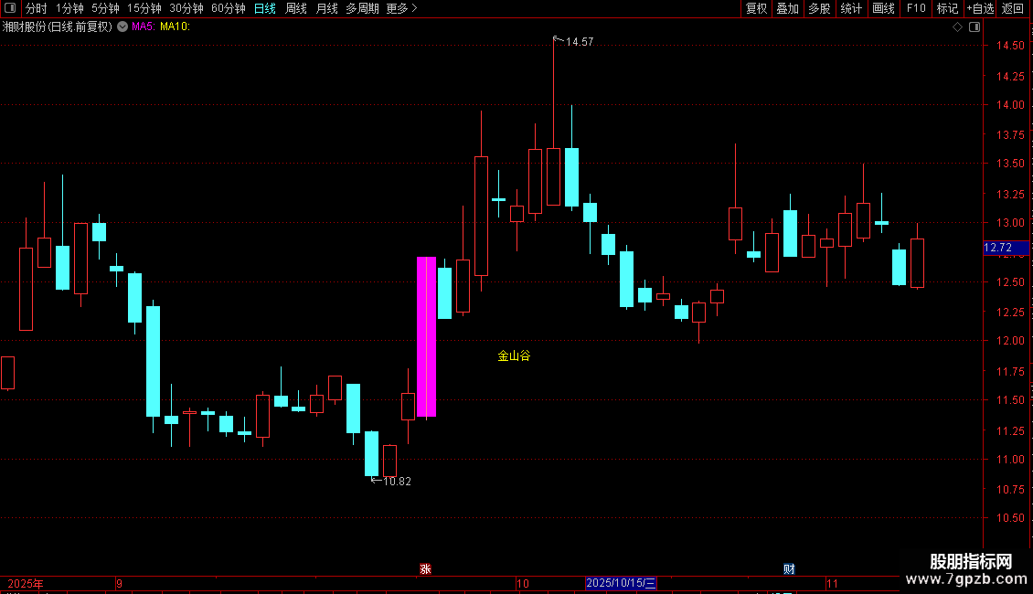 DRAWTEXT(山谷 AND MA(C,5)<MA(C,120),MA(C,30)-0.08,'银山谷'),COLORMAGENTA;