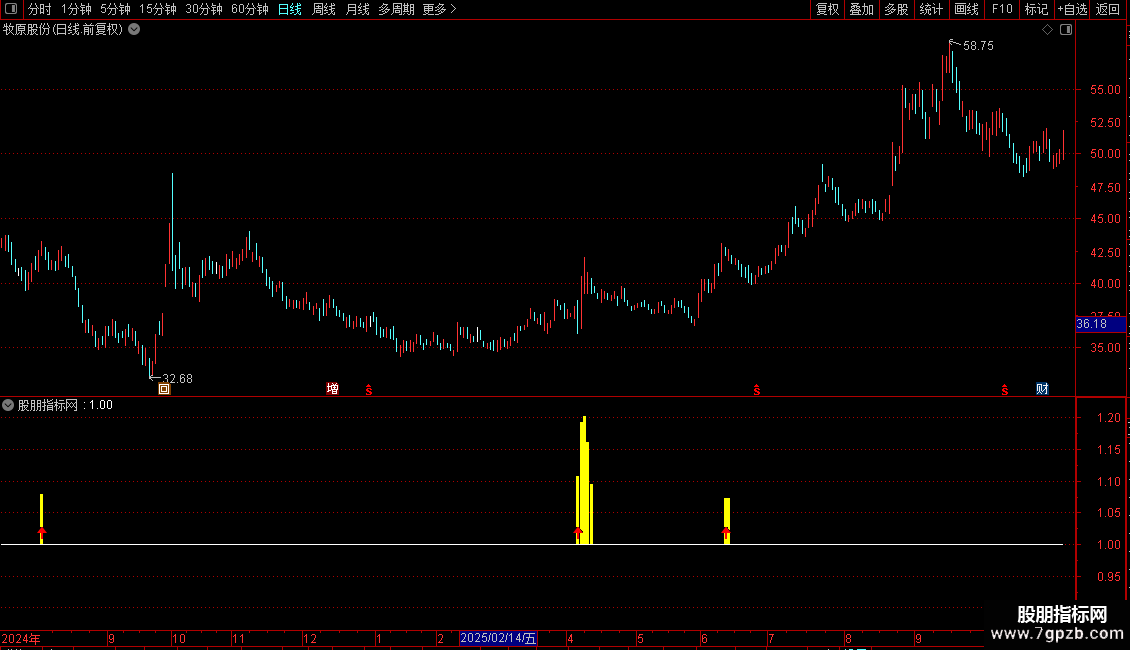 牛股:=IF(CROSS(五日贝塔,1.07) AND 十三日贝塔>1 AND COUNT(五日贝塔<1.07,3)>=2,1.1,1);