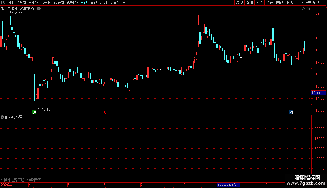 {DRAWTEXT_FIX(CURRBARSCOUNT=1,0.0,0.001,0,'单位(万元)'),COLORYELLOW;}