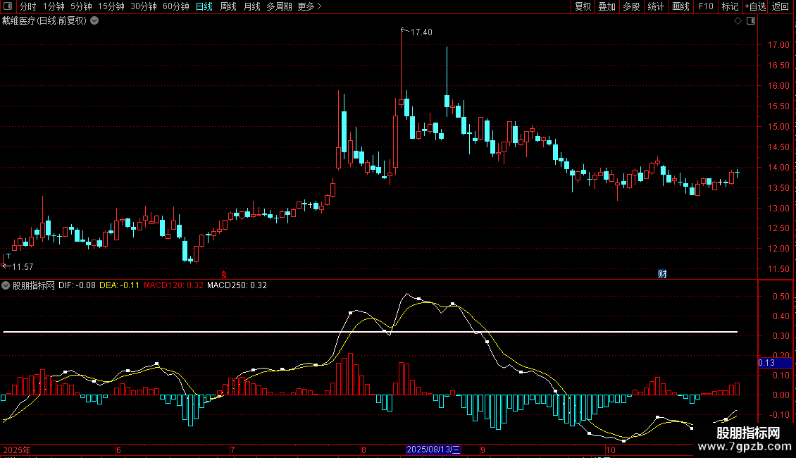 DIF:EMA(CLOSE,12)-EMA(CLOSE,25);DEA:EMA(DIF,5);MACD:=(DIF-DEA)*2;STICKLINE(MACD>0,MACD,0,3,1),COLORRED;STICKLINE(MACD<0,MACD,0,3,1),COLORCYAN;MACD120:REF(MACD/2,BARSLAST(MACD=HHV(MACD,120))),COLORRED,LINETHICK2;MACD250:REF(MACD/2,BARSLAST(MACD=HHV(MACD,250))),COLORWHITE,LINETHICK2;XG:=NOT(REF(MACD120,1)=MACD120);STICKLINE(XG,0,MACD,2,0),COLORYELLOW;STICKLINE(MACD>=MACD250,MACD250,MACD,2,0),COLORMAGENTA;大行情:=NOT(REF(MACD120,1)=REF(MACD250,1)) AND MACD120=MACD250;DRAWTEXT(XG,0,'↖金柱'),COLORYELLOW;DRAWTEXT(大行情,0,'↖大牛启动'),COLORYELLOW;