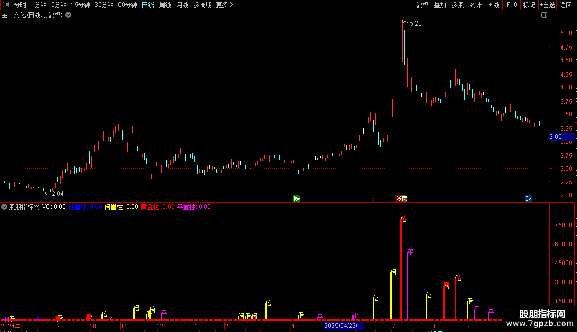 DRAWTEXT(地量柱,VOL+3000,'地'),COLORBLUE;
