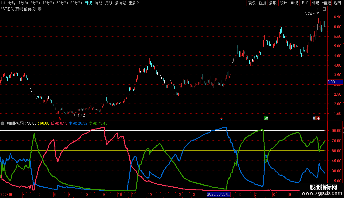 输出高占:(以HB计算的获利盘比例-以LB+MB*7计算的获利盘比例)*100,COLOR009933,线宽为3