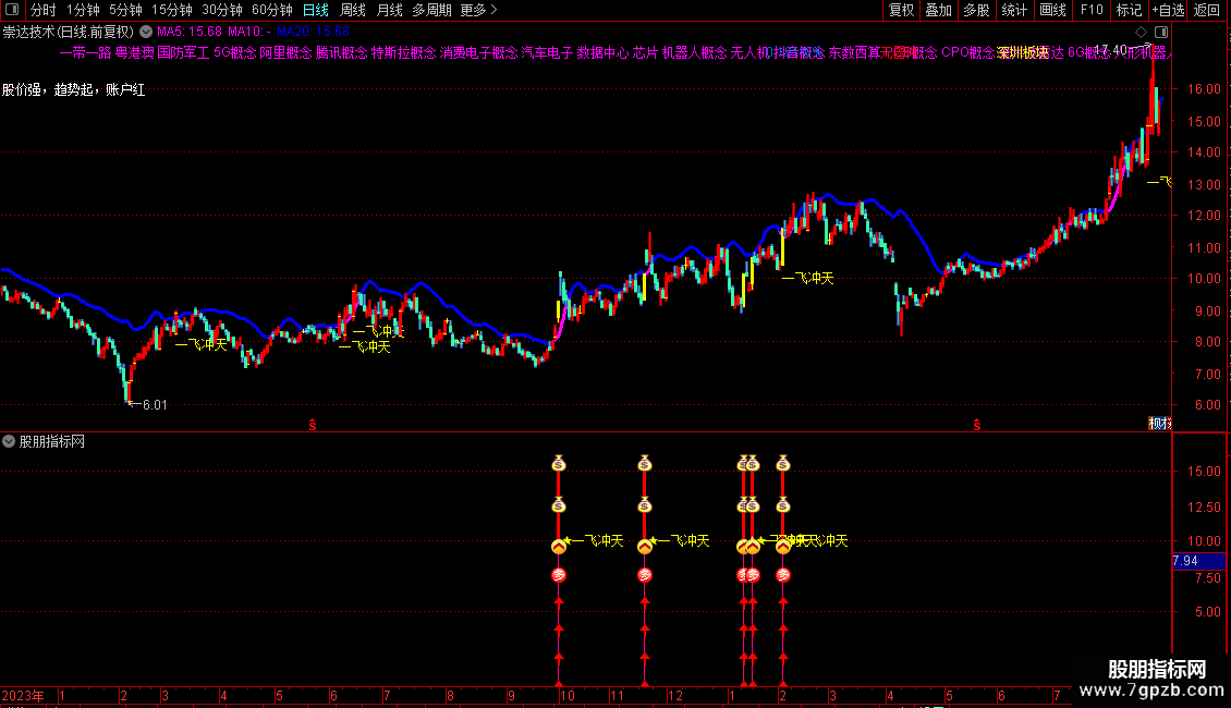 通达信〖一飞冲天〗主副图识别短线爆发机会源码