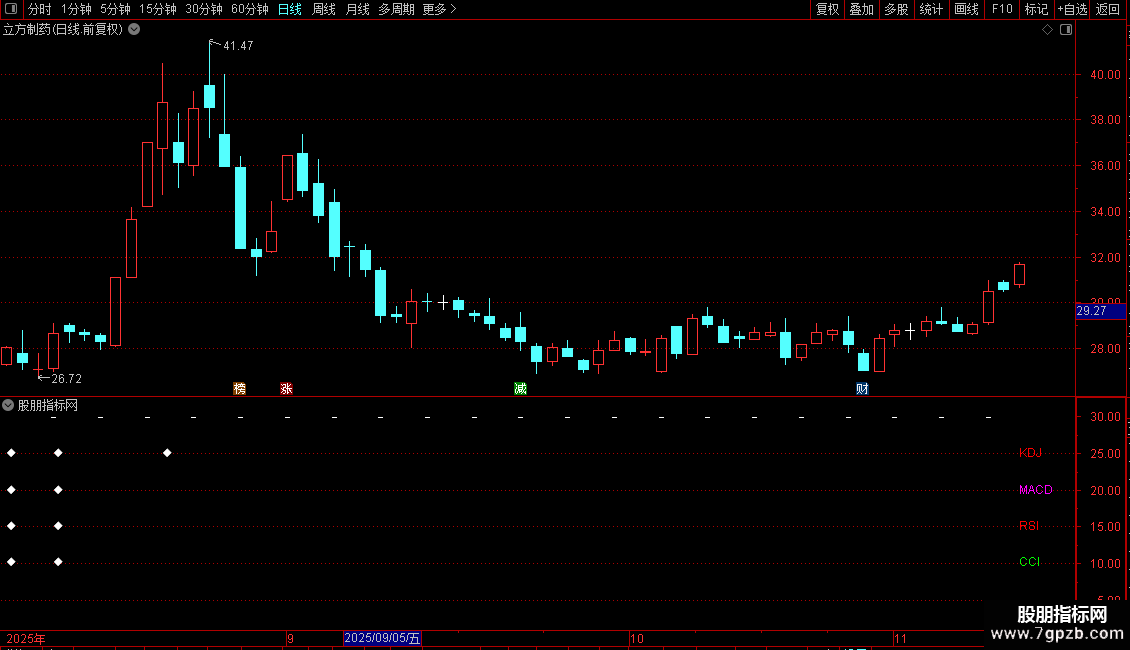 DRAWTEXT(ISLASTBAR,25,'KDJ '),LINETHICK2,COLORRED;