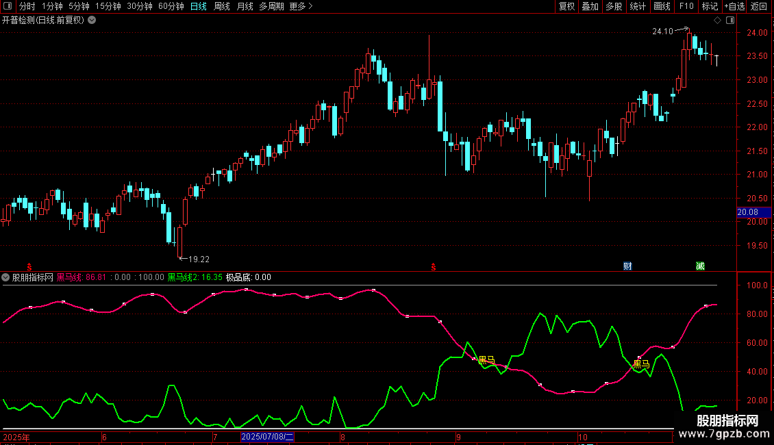 黑马线2:100*(HHV(HIGH,60)-CLOSE)/(HHV(HIGH,60)-LLV(LOW,60)),LINETHICK2,,;