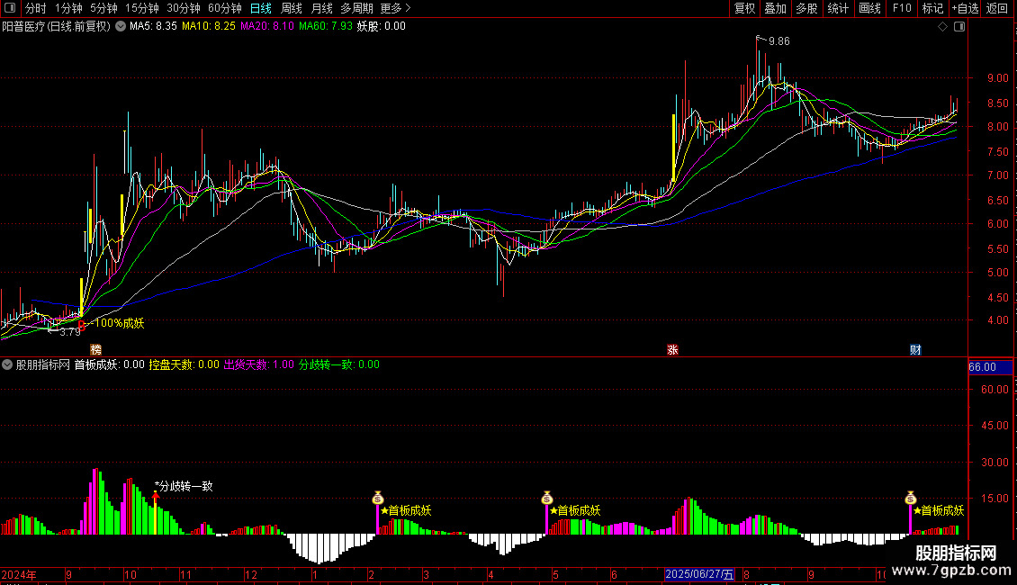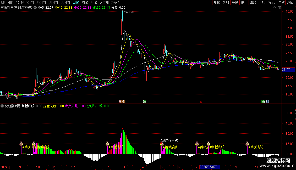 指标通过分析价格变化、筹码集中度和资金流向,识别主力控盘状态和趋势转折点。主要功能包括判断有无庄家控盘、监测主力出货行为、捕捉启动信号。操作策略为:当出现控盘增强且趋势向上时介入,主力出货时减仓,在分歧转一致和首板启动时择机跟进。