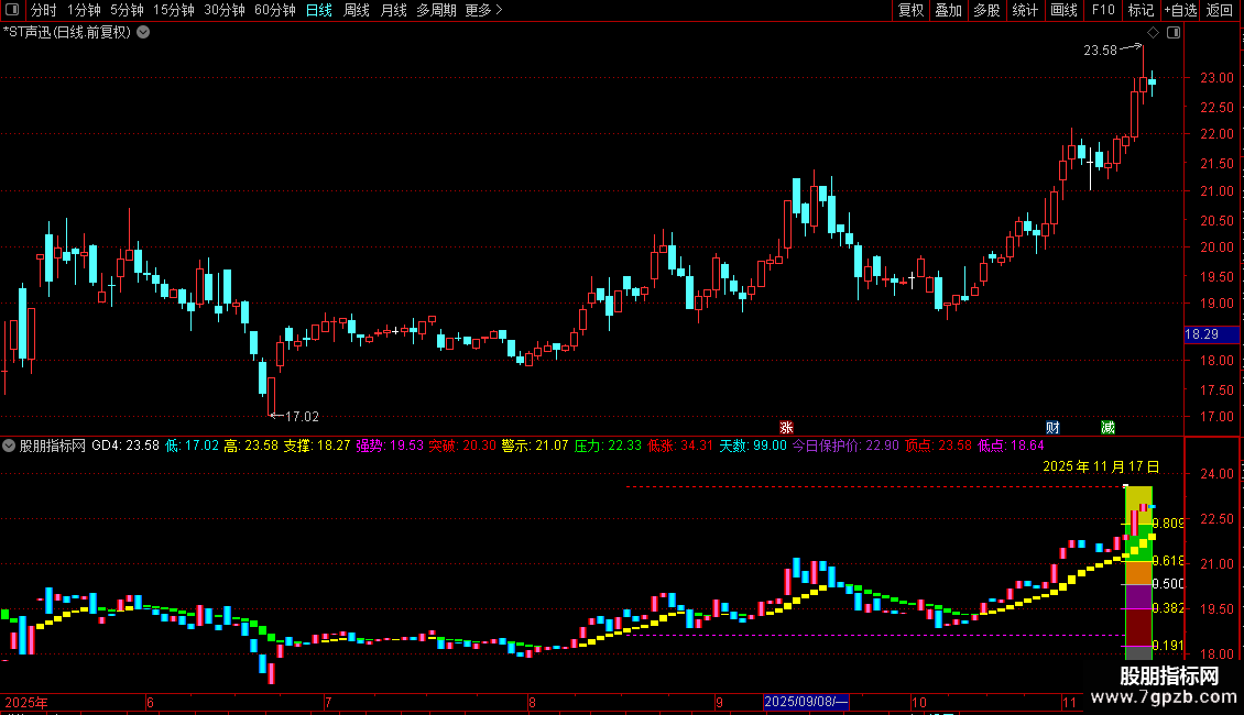 支撑:IF(CURRBARSCOUNT<=N/30,DD+KJ*0.191,DRAWNULL),COLOR00FFFF;