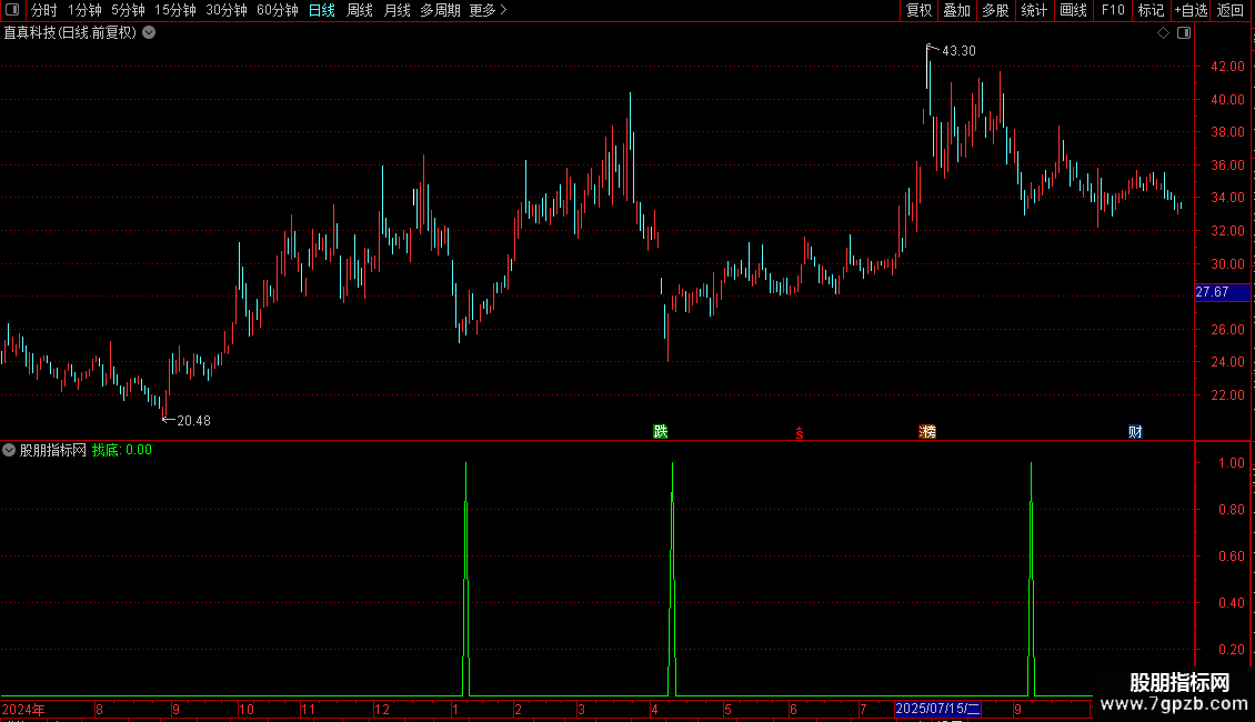 找底:RR AND NOT(REF(RR,1)) AND (RR1<-100 AND BB1<-100) AND CB1<-100,COLORGREEN;