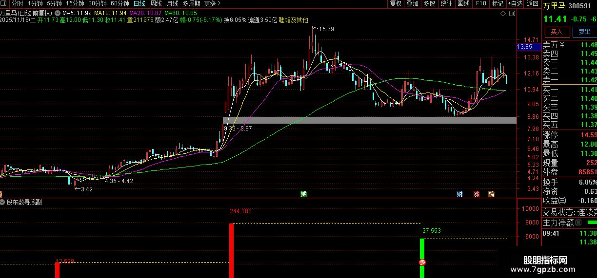 股东数寻底指标含副图和选股功能,通过股东数变化判断底部,提供指标源码,仅限通达信电脑版使用。