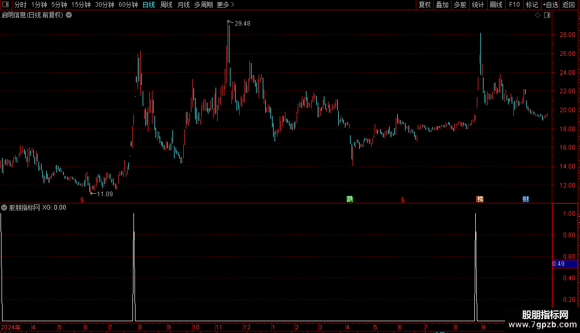 牛股持股线:=IF((HHV(MA5,100)=MA5),HHV(MA5,100),DRAWNULL),COLORRED,LINETHICK3;