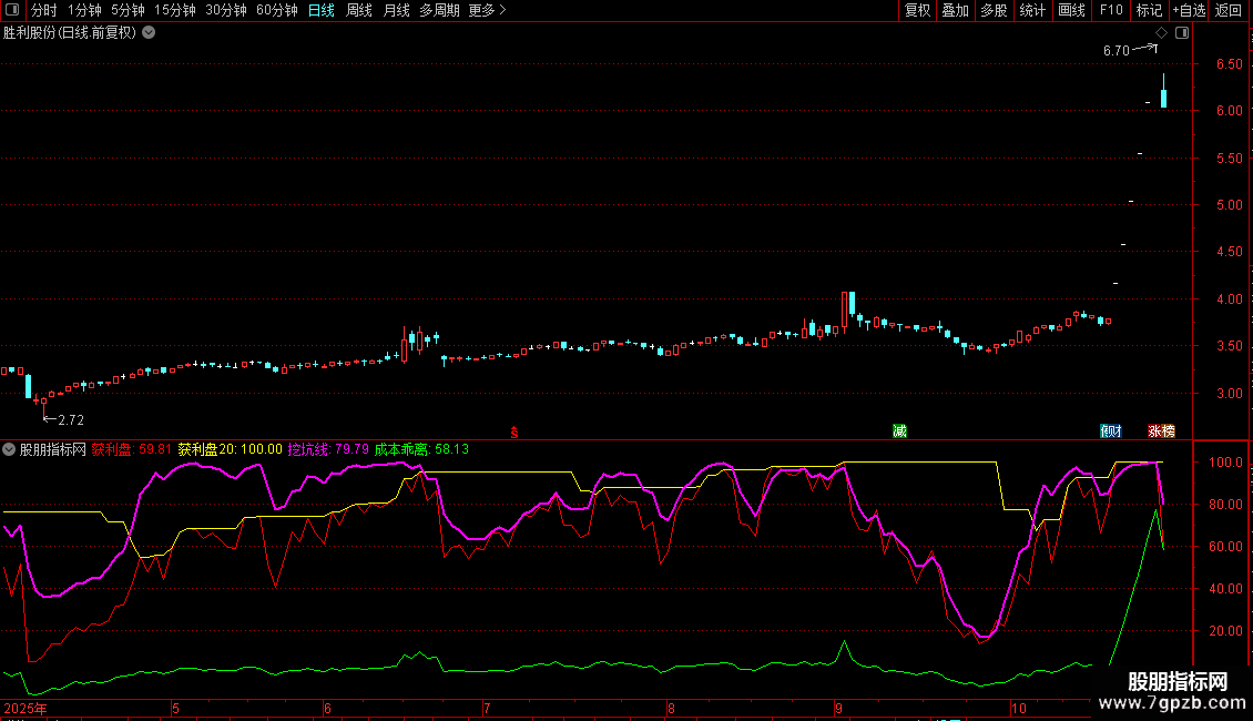 挖坑线:EMA((100+获利盘-获利盘20),3),COLORMAGENTA,LINETHICK2;