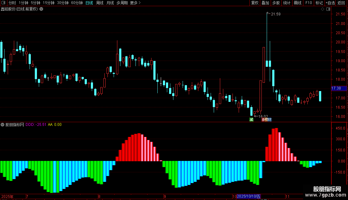 庄影难逃赋值:(AAA-1日前的AAA)/1日前的AAA的1日指数移动平均*100