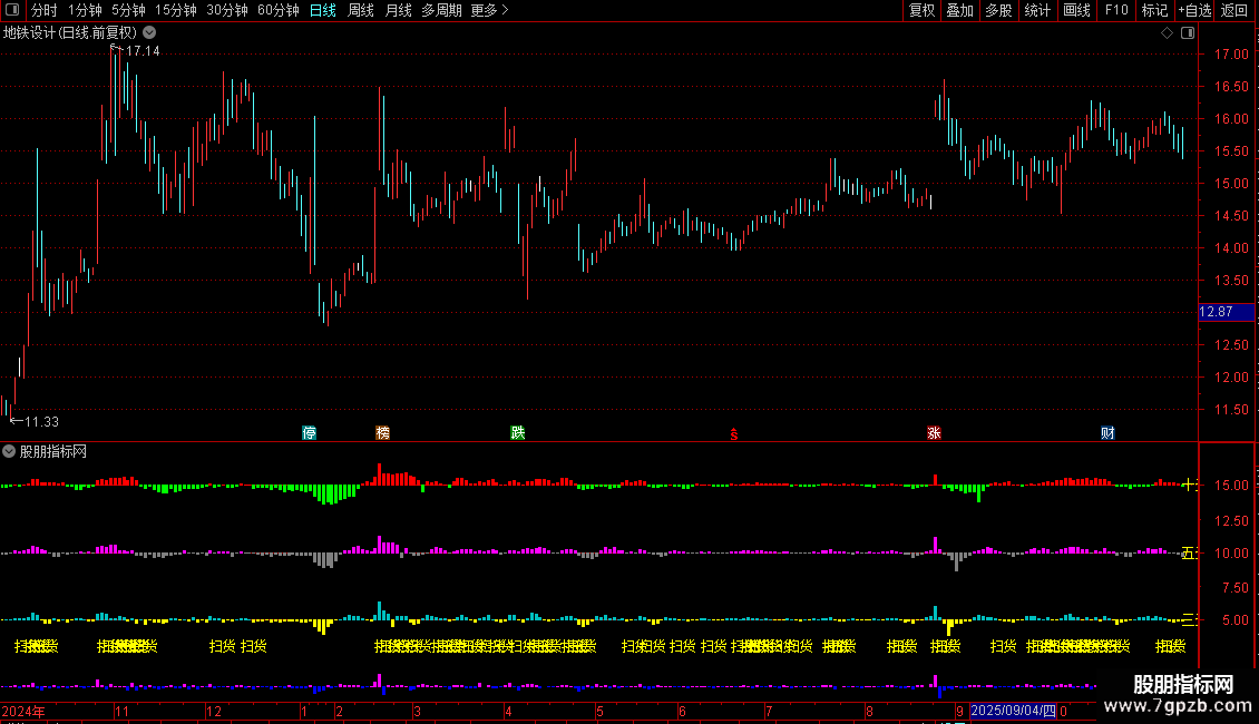 DRAWTEXT(ISLASTBAR=1,IF(VAR22>=0,5,5),'三天'),COLORYELLOW;