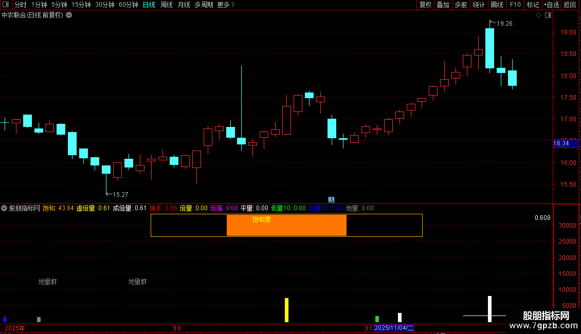 DRAWTEXT(CURRBARSCOUNT=N1+3,中点*1.8,'饱和度'),COLORYELLOW;
