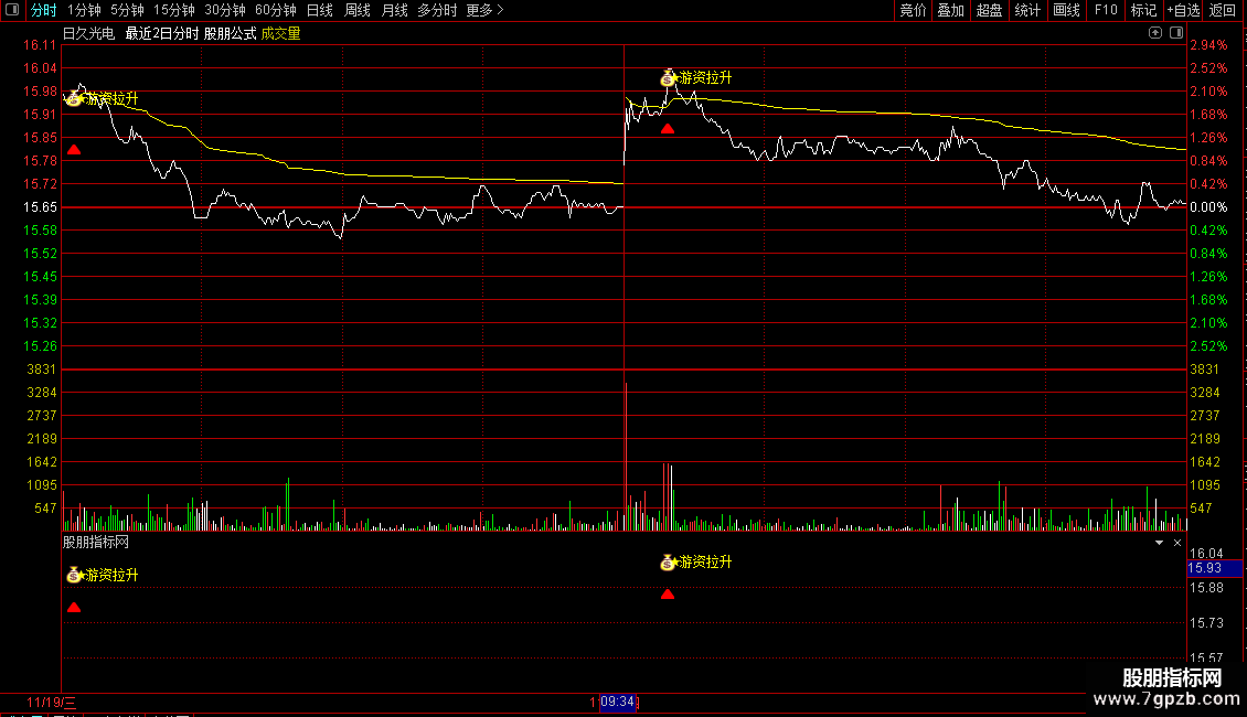 『分时游资拉升』指标 盘中发现游资拉升信号的分时图工具