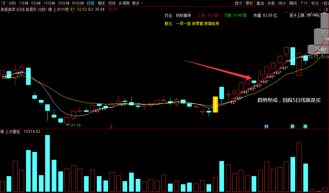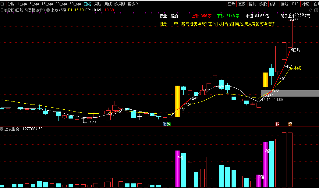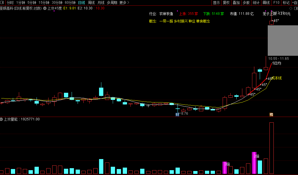 通达信〖上攻45度+上攻量能〗主副图某音推荐的指标趋势股翻倍牛股捕捉方法源码