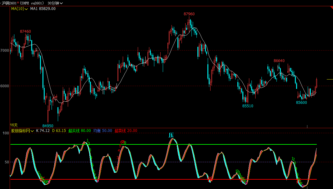 LOWV:=LLV(LOW,9);HIGHV:=HHV(HIGH,9);RSV:=EMA((CLOSE-LOWV)/(HIGHV-LOWV)*100,3);K:EMA(RSV,3);D:MA(K,3);FILLRGN1(K>=D,K ,D ),RGB(200,50,50);FILLRGN1(K<D,K ,D ),RGB(0,244,244);超买线:80,COLORGREEN,LINETHICK2;均衡:50,COLOR4169E1,DOT;超卖线:20,COLORRED,LINETHICK2;DRAWTEXT(FILTER(K>85 AND D>85,5),K,'压'),COLORCYAN,ALIGN1,FONTSIZE20;DRAWTEXT(FILTER(K<15 AND D>15,5),K,'托'),COLORRED,ALIGN1,FONTSIZE20; RSV1:=EMA((CLOSE-LOWV)/(HIGHV-LOWV)*100,3);K1:=EMA(RSV1,3);D1:=MA(K1,3);最近死叉距离2:=BARSLAST(CROSS(D1,K1));前一次死叉距离2:=REF(BARSLAST(CROSS(D1,K1)),最近死叉距离2+1);SPD:=LLV(L,最近死叉距离2+1)<REF(IF(L=LLV(L,最近死叉距离2+1),L,0),前一次死叉距离2);SPD1:=LLV(K1,最近死叉距离2+1)>REF(IF(K1=LLV(K1,最近死叉距离2+1),K1,0),前一次死叉距离2);SKD底背:=CROSS(K1,D1) AND SPD=1 AND SPD1=1 AND REF(IF(K1=LLV(K1,最近死叉距离2+1),K1,0),前一次死叉距离2)<20 AND LLV(K1,最近死叉距离2+1);DRAWTEXT(SKD底背 AND K<20 AND D<20,K*1.02,'底背离'),COLORYELLOW;TJ:=C>REF(C,4);CL:=C<REF(C,4);JL:=BARSLAST(TJ);D11:=JL=1 AND CL;D2:=JL=2 AND CL AND REF(D11,1);D3:=JL=3 AND CL AND REF(D2,1);D4:=JL=4 AND CL AND REF(D3,1);D5:=JL=5 AND CL AND REF(D4,1);D6:=JL=6 AND CL AND REF(D5,1);D7:=JL=7 AND CL AND REF(D6,1);D8:=JL=8 AND CL AND REF(D7,1);D9:=JL=9 AND CL AND REF(D8,1);CG:=(ISLASTBAR=1 AND D1) OR BACKSET(ISLASTBAR=1 AND D2,2) OR BACKSET(ISLASTBAR=1 AND D3,3) OR BACKSET(ISLASTBAR=1 AND D4,4) OR BACKSET(ISLASTBAR=1 AND D5,5) OR BACKSET(ISLASTBAR=1 AND D6,6) OR BACKSET(ISLASTBAR=1 AND D7,7) OR BACKSET(ISLASTBAR=1 AND D8,8) OR BACKSET(D9,9); DRAWTEXT(CG AND JL=1,D*1.05,'1'),COLORGREEN;DRAWTEXT(CG AND JL=2,D*1.05,'2'),COLORGREEN;DRAWTEXT(CG AND JL=3,D*1.05,'3'),COLORGREEN;DRAWTEXT(CG AND JL=4,D*1.05,'4'),COLORGREEN;DRAWTEXT(CG AND JL=5,D*1.05,'5'),COLORGREEN;DRAWTEXT(CG AND JL=6,D*1.05,'6'),COLORGREEN;DRAWTEXT(CG AND JL=7,D*1.05,'7'),COLORGREEN;DRAWTEXT(CG AND JL=8,D*1.05,'8'),COLORGREEN;DRAWTEXT(CG AND JL=9,D*0.8,'9'),COLORMAGENTA;GQT:=C<REF(C,4);GCL:=C>REF(C,4);GJL:=BARSLAST(GQT);GD1:=GJL=1 AND GCL;GD2:=GJL=2 AND GCL AND REF(GD1,1);GD3:=GJL=3 AND GCL AND REF(GD2,1);GD4:=GJL=4 AND GCL AND REF(GD3,1);GD5:=GJL=5 AND GCL AND REF(GD4,1);GD6:=GJL=6 AND GCL AND REF(GD5,1);GD7:=GJL=7 AND GCL AND REF(GD6,1);GD8:=GJL=8 AND GCL AND REF(GD7,1);GD9:=GJL=9 AND GCL AND REF(GD8,1);GCG:=BACKSET(ISLASTBAR=1 AND GD5,5) OR BACKSET(ISLASTBAR=1 AND GD6,6) OR BACKSET(ISLASTBAR=1 AND GD7,7)OR BACKSET(ISLASTBAR=1 AND GD8,8) OR BACKSET( GD9,9);DRAWTEXT(GCG AND GJL=1,K*1.1,'1'),COLORRED;DRAWTEXT(GCG AND GJL=2,K*1.1,'2'),COLORRED;DRAWTEXT(GCG AND GJL=3,K*1.1,'3'),COLORRED;DRAWTEXT(GCG AND GJL=4,K*1.1,'4'),COLORRED;DRAWTEXT(GCG AND GJL=5,K*1.1,'5'),COLORRED;DRAWTEXT(GCG AND GJL=6,K*1.1,'6'),COLORRED;DRAWTEXT(GCG AND GJL=7,K*1.05,'7'),COLORRED;DRAWTEXT(GCG AND GJL=8,K*1.05,'8'),COLORRED;DRAWTEXT(GCG AND GJL=9,K*1.05,'9'),COLORGREEN;